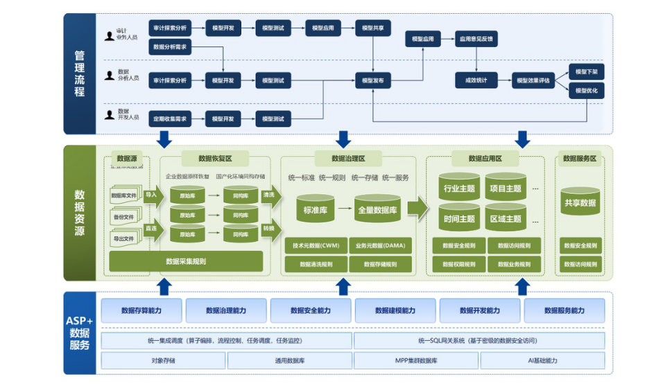 ASP+數(shù)據(jù)服務(wù):圍繞數(shù)據(jù)倉庫、數(shù)據(jù)湖、湖倉一體等技術(shù)體系,提供了全技術(shù)棧、全鏈路的大數(shù)據(jù)存儲、開發(fā)、治理能力,打通了涵蓋數(shù)據(jù)集成、存儲、治理、建模、分析、挖掘和服務(wù)在內(nèi)的數(shù)據(jù)處理全生命周期管理能力,實現(xiàn)了各種數(shù)據(jù)資源的共享、協(xié)同、服務(wù)。