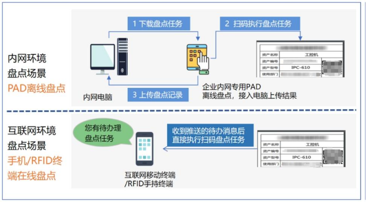 移動(dòng)智能應(yīng)用:通過(guò)RFID等智能標(biāo)簽和智能手持終端設(shè)備,實(shí)現(xiàn)在資產(chǎn)現(xiàn)場(chǎng)的快速數(shù)據(jù)采集,實(shí)現(xiàn)智能范圍管控和資產(chǎn)快速盤(pán)點(diǎn)。