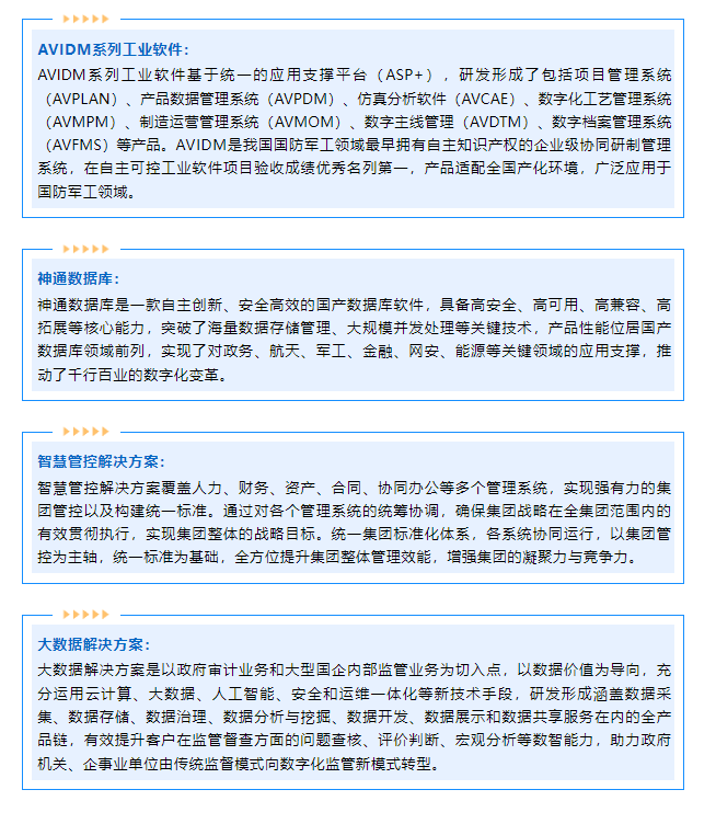 神軟公司作為集團(tuán)公司信息化建設(shè)的重要支撐單位,在本次參展中,集中亮相了AVIDM系列工業(yè)軟件、神通數(shù)據(jù)庫(kù)、智慧管控系統(tǒng)及大數(shù)據(jù)服務(wù)等核心產(chǎn)品與技術(shù)服務(wù),展示了神軟公司作為國(guó)產(chǎn)軟件排頭兵在自主創(chuàng)新和技術(shù)突破上的潛力和成績(jī),展現(xiàn)了神軟公司在助力航天信息化建設(shè)中的實(shí)力。展會(huì)現(xiàn)場(chǎng)吸引了眾多嘉賓駐足。