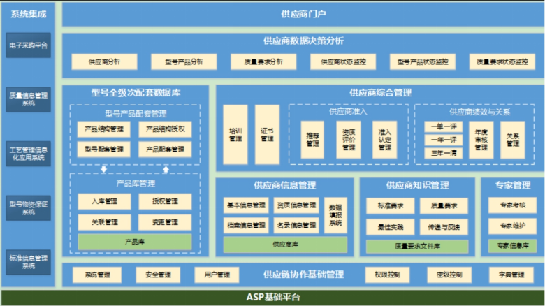 全級次供應(yīng)商管理系統(tǒng)按照對供應(yīng)商“全領(lǐng)域、全級次、全過程和全要素”管理的要求,以實現(xiàn)“全領(lǐng)域、全級次、全過程、全要素”覆蓋的供應(yīng)商管理工作為目標(biāo),對供應(yīng)商管理活動中產(chǎn)生的各類信息進(jìn)行統(tǒng)一歸集與管理。系統(tǒng)通過供應(yīng)商信息管理、綜合管理、型號/產(chǎn)品數(shù)字結(jié)構(gòu)管理、決策分析等功能模塊,實現(xiàn)對供應(yīng)商全生命周期過程管理和各類信息的管理管控。通過系統(tǒng)的實施,可實現(xiàn)供應(yīng)商管理業(yè)務(wù)的 “信息服務(wù)、業(yè)務(wù)支撐、決策支持、風(fēng)險管控”,不斷提升企業(yè)供應(yīng)鏈現(xiàn)代化水平。